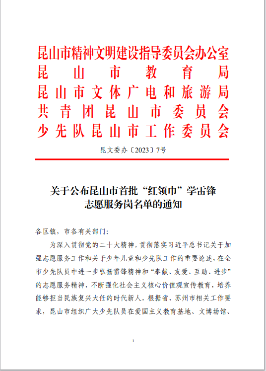 昆山市图书馆“小雏鹰管理员”活动获昆山市首批“红领巾学雷锋志愿服务岗”荣誉称号