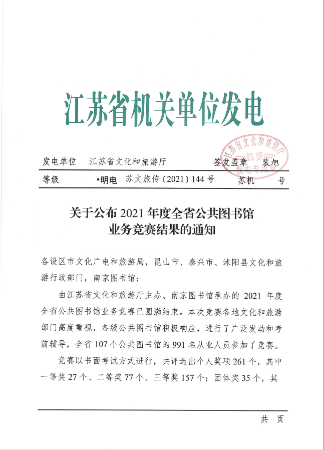昆山市图书馆在全省公共图书馆业务竞赛中荣获佳绩