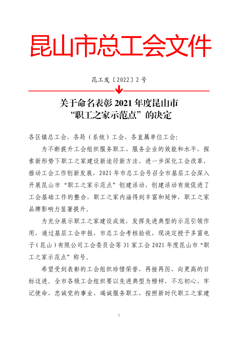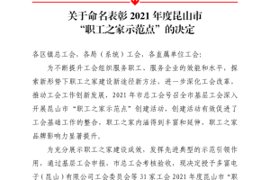 昆山市图书馆工会委员会被授予2021年度昆山市“职工之家示范点”荣誉称号