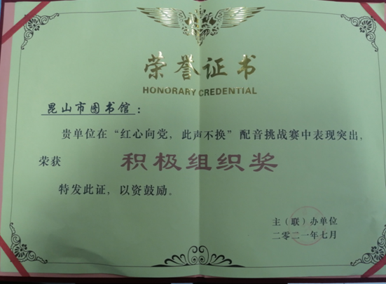 昆山市图书馆在“红心向党,此声不换”配音挑战赛中荣获积极组织奖