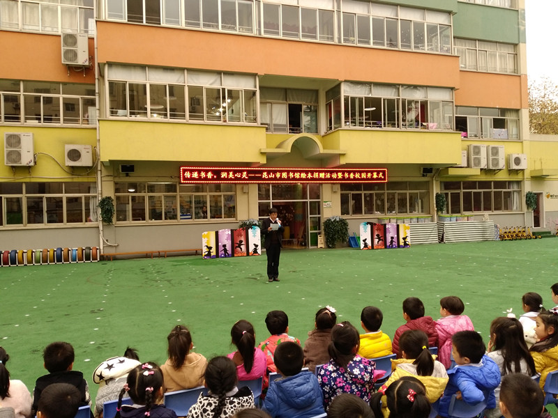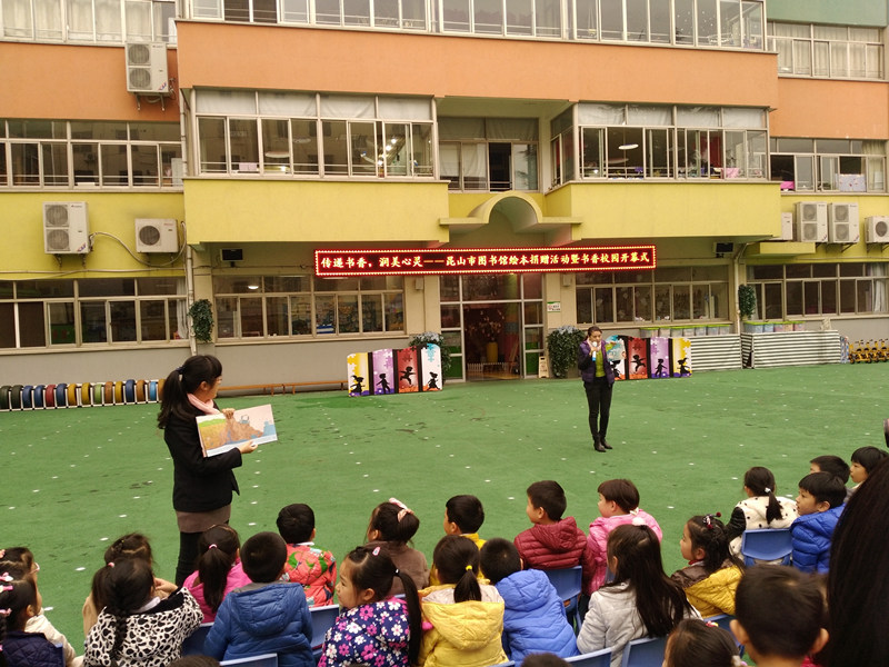 11月29日,昆山市图书馆将50套共计200册昆山民间故事系列绘本带进了北珊湾幼儿园。图书馆副馆长龚广宇,流通部主任傅玲玲及园方行政领导等参加了当天的捐赠仪式。