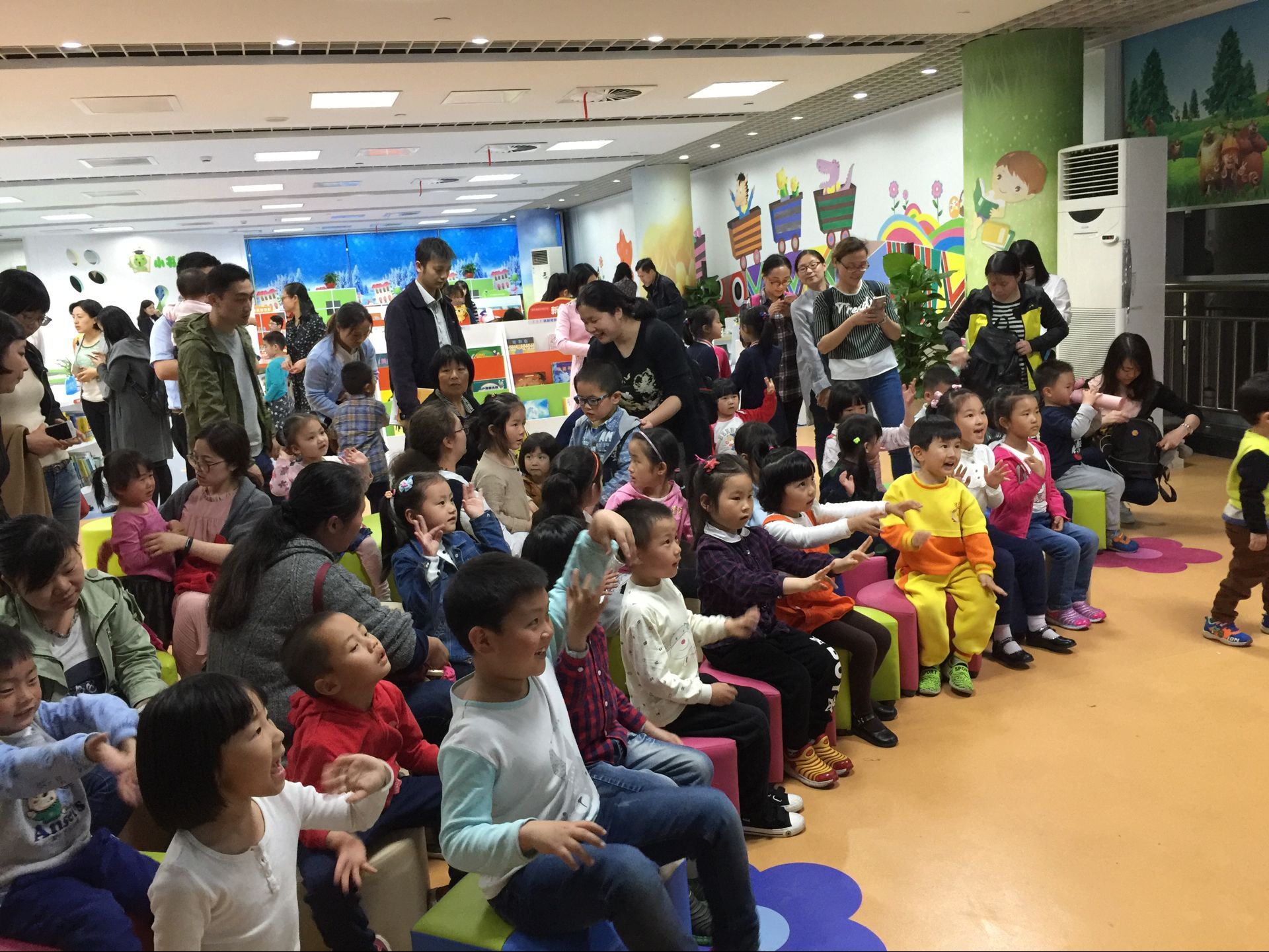 当晚六点左右,家长就带着小朋友们陆续的进入少儿室一楼进行签到和阅读。稍后全体集合前往二楼绘本馆并由李老师带队向大家详细介绍绘本观的情况:小书虫绘本馆是昆山首个专门为0-6岁儿童提供独立公共文化服务的场馆,总服务面积300平方米,入藏各类绘本图书1万余册,有绘本文学区、英文原版区、新书架区、小舞台区,为鹿城低幼儿童提供各类绘本的阅览、借阅、检索、咨询以及开展丰富多彩的绘本阅读推广活动。