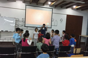 这次活动我馆请来了绘本树英语的Lisa老师上课。首先老师教小朋友们如何用英语相互打招呼,活跃了一下气氛。接着就进入今天的主题,老师用英文简单的阐述了故事内容,用图片演示相关情节,还配以生动形象的动作表情。说到动情之处,小朋友们会站起来跟着老师异口同声地说:“No”, “be quiet” , “come back here”……小朋友们在欢声笑语中不知不觉就学到了很多知识。活动最后,大家一起玩猜拳游戏,谁输了,就要讲出相应的英语单词或句子。