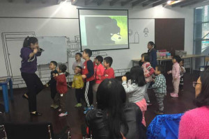 这次活动由小书虫俱乐部请来了长颈鹿美语的Cherry老师来上课,活动内容分为两个环节,故事环节和手工环节。