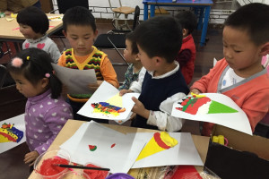 这次活动由小书虫俱乐部请来了米乐英语的老师来上课,活动内容分为两个环节,故事环节和手工环节。首先由米乐的老师和小朋友们打招呼后,活动就正式开始了。老师用PPT讲解了小象黛西进冰激凌店里看到各种各样的冰激凌非常的开心,然后就想自己动手制作那些圆形三角形及不同颜色的漂亮美味的冰激凌。而我们的小朋友在我们老师的带领下也制作了看上去美味可口的冰激凌。