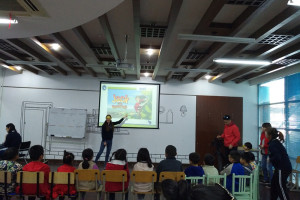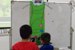 2018年4月15日下午两点,昆图小书虫俱乐部在读书乐基地为小朋友们准备了一节英语课堂《Jack and the Beanstalk》,分享故事“杰克与豌豆”,做一个聪明勇敢的阅读小能手。现场气氛活跃,活动分为讲读环节和DIY环节。本次活动旨在激发小朋友学习英语兴趣,爱上阅读。