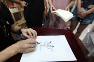 在讲座中,慕容老师从自己早年的创作经历出发,认为自己童年时的一些想法为自己之后的漫画创作带来了灵感,一个人童年的体验,特别是心理上的那些体验,会影响到他长大以后成为一个什么样的人,会成为他生命里的一个宝库、创作的源泉,他鼓励小朋友们去体验生活、记录生活。现场,慕容老师还为许多漫画迷们画了“刀刀狗”的经典形象,受到读者的热列欢迎。