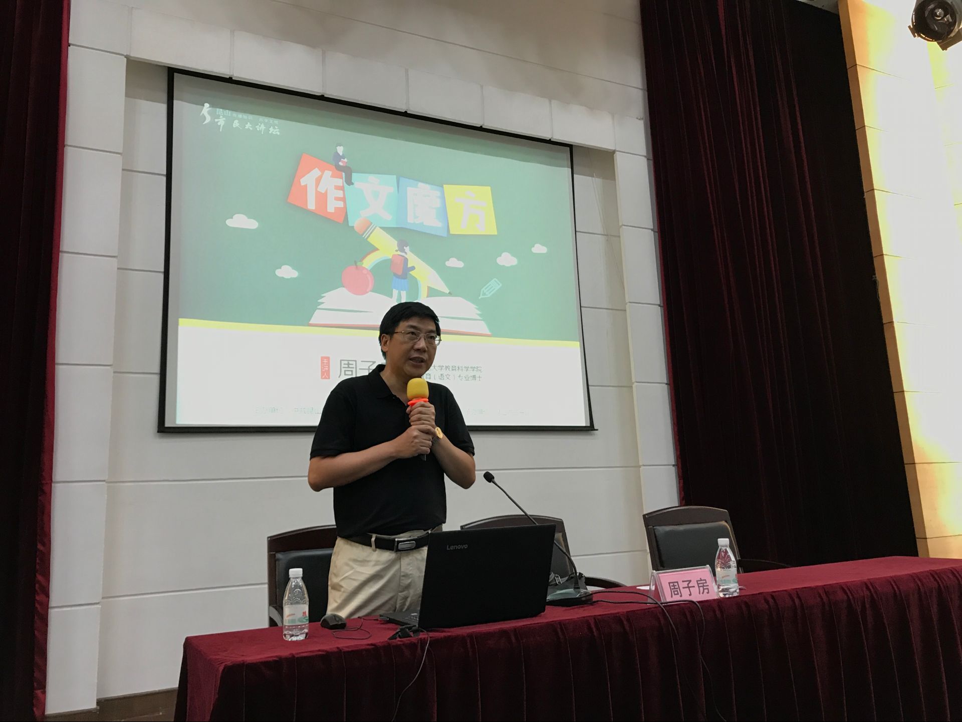 8月11日,昆山市图书馆市民大讲坛活动举办“作文魔方”讲座,主讲人周子房。