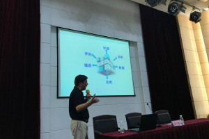 讲座中,周老师先从江苏的高考趋势讲起,从宏观上对学生的作文写作进行了指导,接下来从具体问题入手,结合自身多年作文教学的经验,为家长及孩子们提供了可行性非常强的指导意见。他认为作文写作应从六大块入手,分别为:比较、分析、联想、功用、评论、描述。然后周老师通过讲解例文,进行深入浅出的分析,认为如果能把这六大形式应用于写作当中,经过不断地练习,作文写作水平必然会有所提升。
