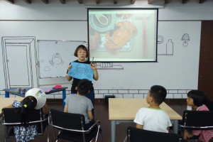 9月9日下午2点,每月一次的小书虫小创客活动又来到了读书乐活动基地,这次的活动主题是介绍昆山特色特产阳澄湖大闸蟹:霸王剪刀手