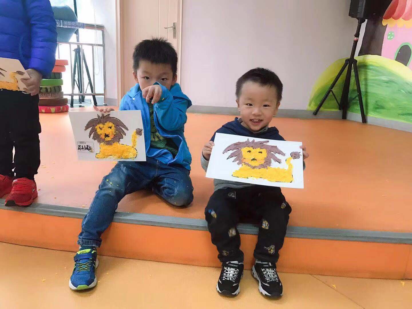这本绘本用水粉画般的图画和生动有趣的故事,在没有说教的情况下,让孩子们学会遵守规则非常重要,但同时让我们的孩子知道,在什么情况下规定是可以打破的也同样重要!这就是绘本的魅力。绘本讲读完毕后,老师还带着大家一起用毛线制作属于自己的小狮子。