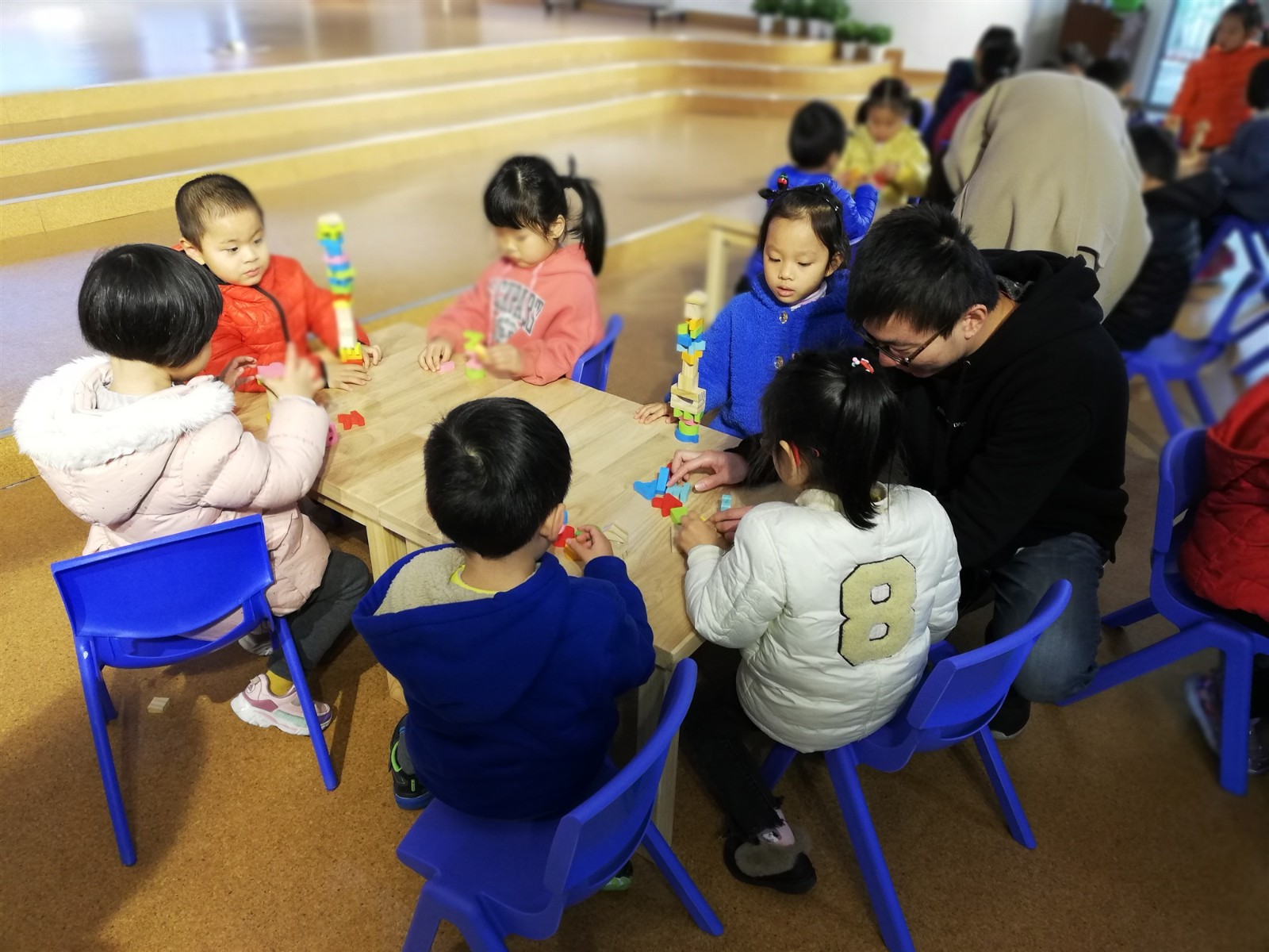 在这难忘的日子,怎么能少得了我们小读者的活动与身影呢。2018年12月5日,昆山市图书馆小书虫俱乐部走进鹿城幼儿园开展绘本讲读活动,将精美的绘本与好听的故事带到小读者身边。老师精选了凯迪克金奖绘本《我的兔子朋友》来分享,这是关于朋友和宽容的绘本,故事内容符合幼儿园小朋友阅读特点,通过故事可以让孩子们感受兔子和小老鼠之间美好的友谊,在与朋友相处中学会宽容、理解,只有懂得接受朋友的缺点才会有好朋友。故事分享后,小朋友们练习了如何搭积木才不会像故事中的小兔子一样倒塌,带领他们思考,之后又创作了动物叠高画加深孩子们对动物大小的认识。