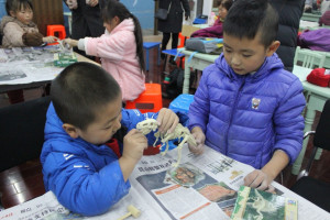 活动中老师借助平板电脑中的3D技术应用程序及3D立体书为小朋友们演示、讲解了恐龙方面的知识,小朋友们体验到了3D互动阅读带来的形象、生动的画面。恐龙知识互动问答、3D恐龙互动体验环节,小朋友们争先恐后参与其中,学到了很多恐龙知识。学习完知识后,就开始动手操作啦,两个小朋友一组,每组发放了一套模拟恐龙化石,小朋友们化身考古学家,分组成立小小考古队,对模拟恐龙化石进行发掘、清理、拼装,小朋友们各个充满干劲,场面热火朝天。