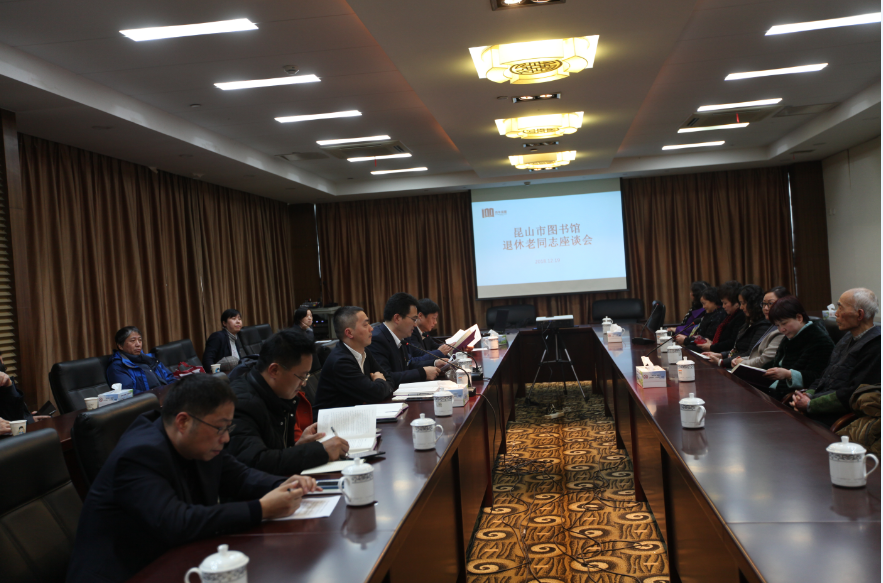 12月19日,昆山市图书馆召开退休老同志座谈会。昆山市文广新局薛菊芳副局长、周骁副局长、文化艺术科叶凤科长出席,会议由昆山市图书馆金磊馆长主持。