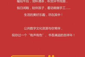 一本好的有声图书,为你打开阅读的另一扇窗,让大家看到更绚丽的世界。今年我们聚焦国家数字图书馆移动阅读平台上的“有声”音视频资源,向公众展示兼具知识性与趣味性的线上展览,引导全国公众在春节期间积极参与“听书”阅读,解放双手,用耳朵感受阅读的独特魅力,过一个不一样的书香年!