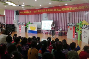 昆山市图书馆2013年开始举办昆山民间故事系列绘本创作活动,该系列图书突破了以往的传统民间文化传播方式,至今已陆续创作了《狐狸兔子猢狲和马的故事》、《马鞍山与文笔峰》、《一毛鸟》、《巴解吃螃蟹的故事》、《朱元璋与昆曲的故事》、《乾隆吃奥灶面的故事》六本昆山民间故事绘本。 金澄幼儿园一直致力于以水墨画特色教学为切入点,将传统水墨艺术引入儿童绘本创作,创设浓厚的幼儿园水墨文化特色氛围,与图书馆在发扬民族特色、提高儿童审美、了解地方文化等方面起到了异曲同工的效果。馆园双方希望通过这次赠书活动将带有水墨之风的民间故事绘本带到幼儿园孩子身边,让更多的孩子走入绘本世界,爱上民间故事,爱上阅读,了解昆山历史文化之魂,体会昆山民俗文化之美。