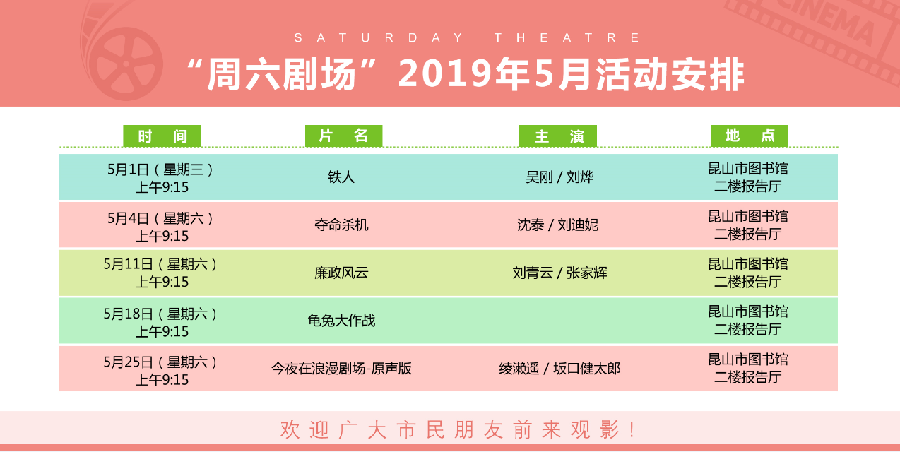 “周六剧场”2019年5月活动安排