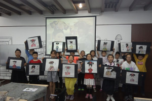 在活动后期人物创作中用到了水墨的形式,用勾线笔勾勒基本造型,彩墨画出漂亮的色彩和装饰。毛笔的运用大家基本都能掌握,部分小朋友不能很好的掌握毛笔的运用,线条不够流畅需要继续加强锻炼。各种颜色的搭配和毛笔墨色的运用让孩子们的作品丰富而有趣。
