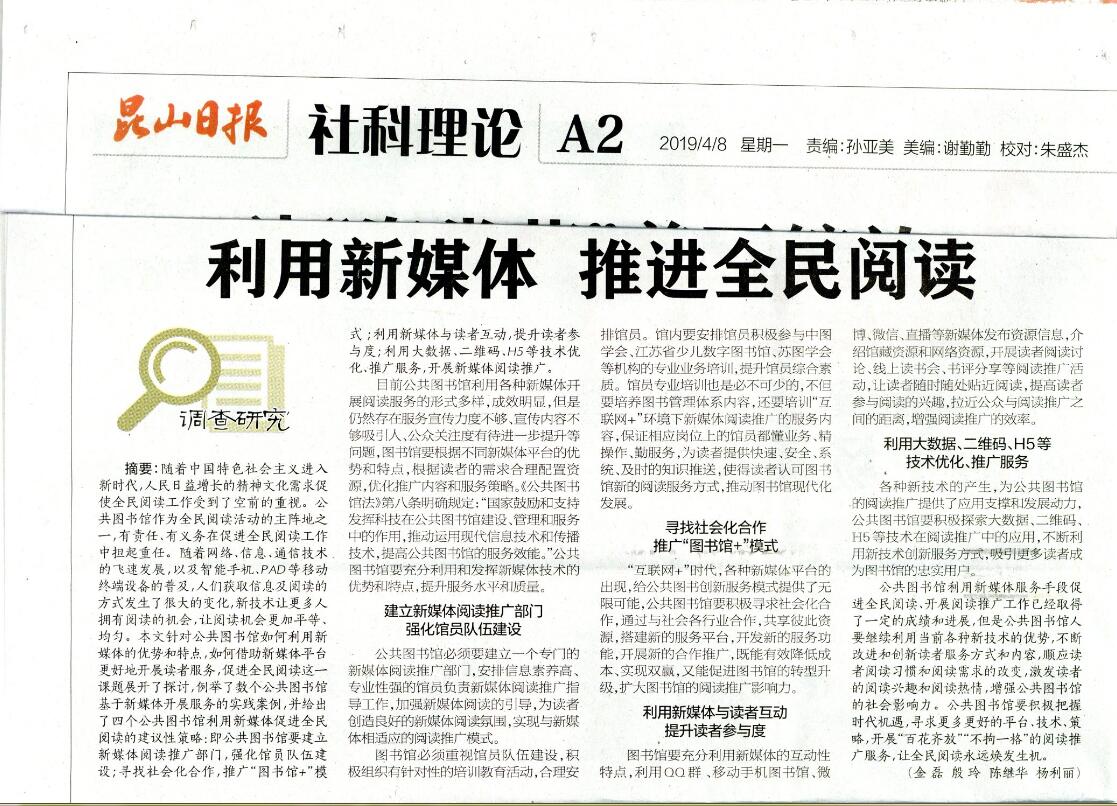 【昆山日报】利用新媒体 推进全民阅读