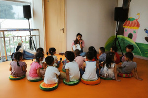 活动开始老师带领小朋友在充满活力的音乐中热身后再开始绘本分享。