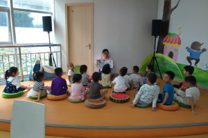活动开始老师带领小朋友观看了由老师表演的昆曲小剧场,讲述了侯方域和李香君两人到相遇、相见、相知,相爱到赠扇,最后离别的故事。之后开始了绘本分享。
