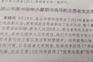 【图书馆报】昆山市图书馆举办暑期书海导航志愿者交流表彰大会
