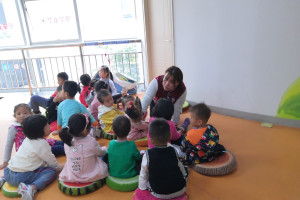 活动开始老师带领小朋友在充满活力的音乐中热身后再开始绘本分享。