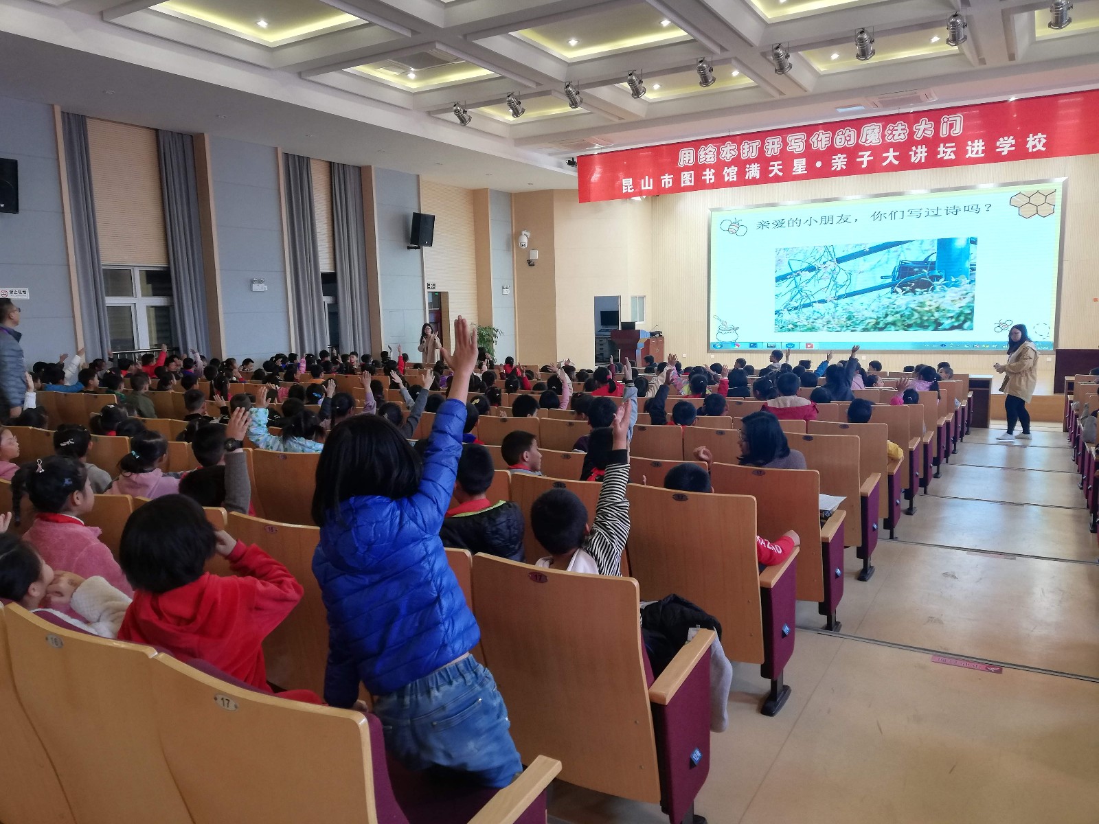 11月20日,昆山市“满天星”服务项目之一亲子大讲坛走进紫竹小学,青年女作家、新锐教育实践者、拙原绘本工作室创始人陈迅喆为400名一二年级学生带去了《用诗歌绘本打开写作的魔法大门》讲座。