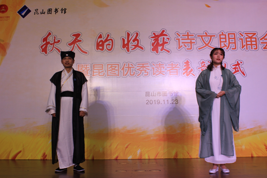 活动首先对2019年度昆山市图书馆少儿优秀读者代表、成人优秀读者代表和优秀志愿者颁奖。接着举办了“秋天的收获”诗文朗诵会。