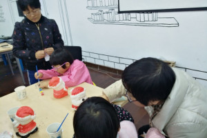 活动开始,老师一边讲解故事内容,一边配以欢快的圣诞乐曲。小朋友们都积极地参与了进来,跟着老师重复说着一些单词、词组,“Santa”, “red suit ”, “Merry Christmas”……最后家长和孩子起制作圣诞主题存钱罐。