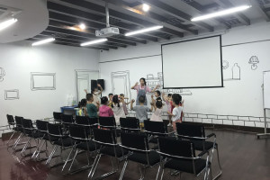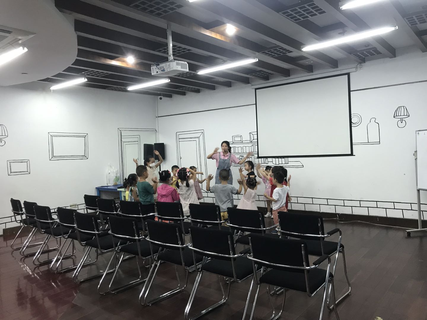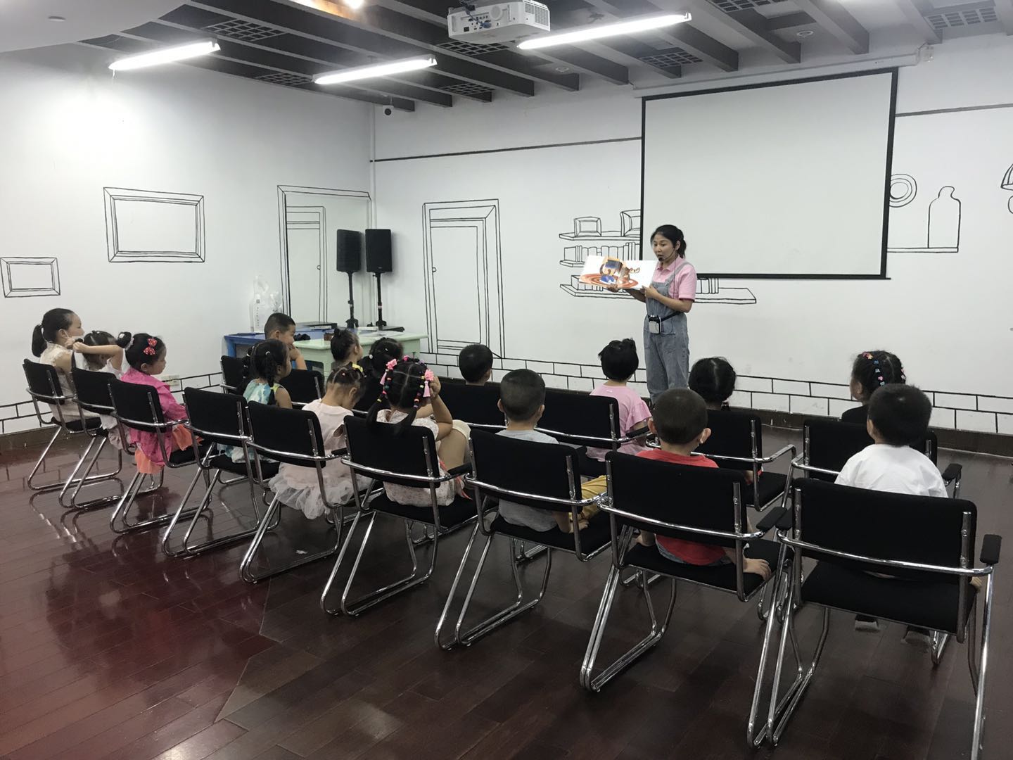活动开始后,老师带领小朋友们在充满欢快,动感的音乐中进行热身后再开始绘本分享。