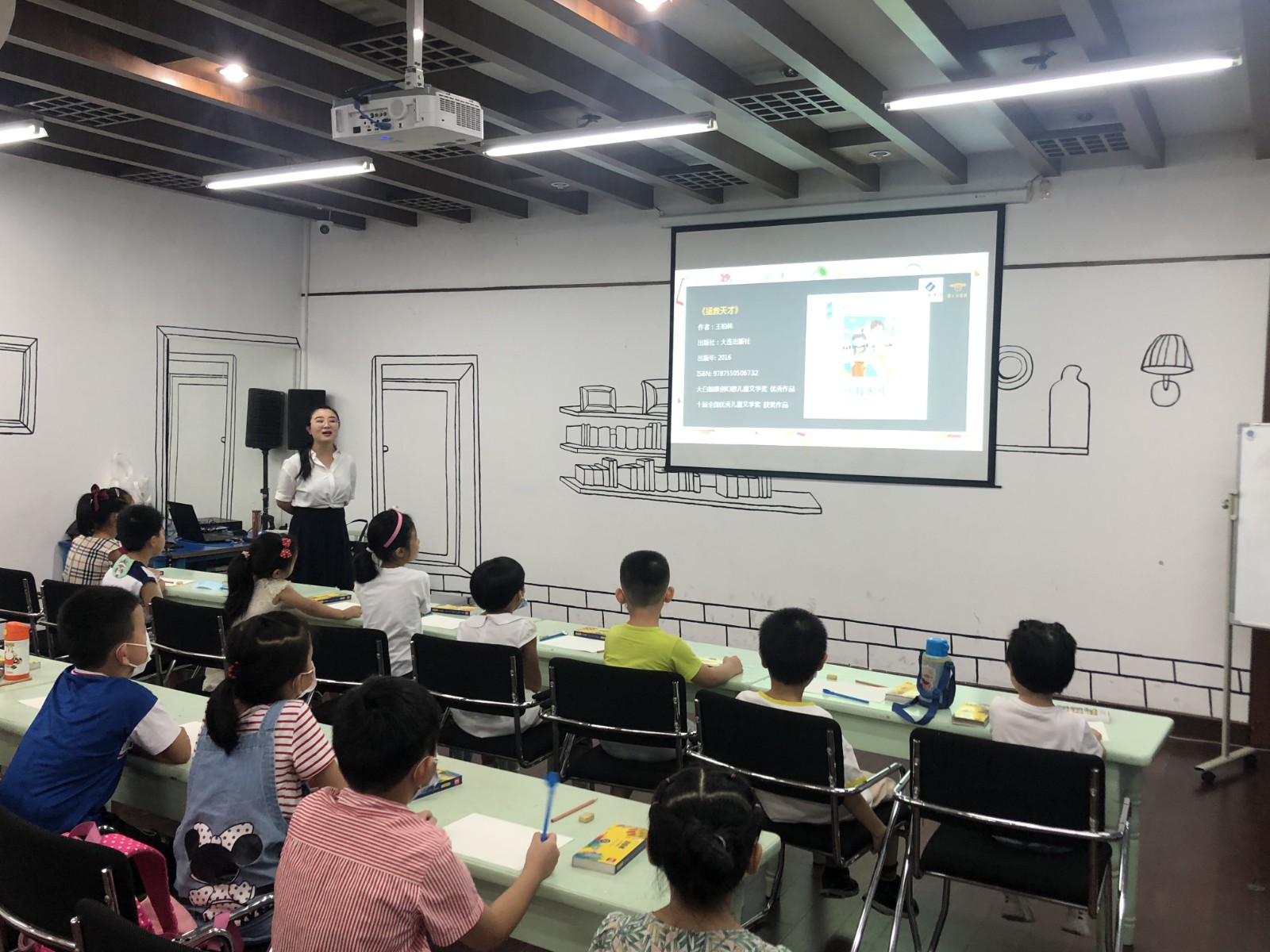 活动当天,小朋友们早早来到活动教室,充满欢声笑语,等候活动开始。活动伊始,小朋友们纷纷上台自我介绍,讲述自己最喜欢的课程。随后,授课老师介绍了一本优秀书籍——《拯救天才》,讲述书籍故事内容,并讲述推荐理由。紧接着,结合 “爱上简笔画”数字资源,老师教学小朋友们学习手抄报绘画。通过简笔画绘画,让小朋友们感受绘画的乐趣,寄托对生活的热爱,对美好未来的祝愿。