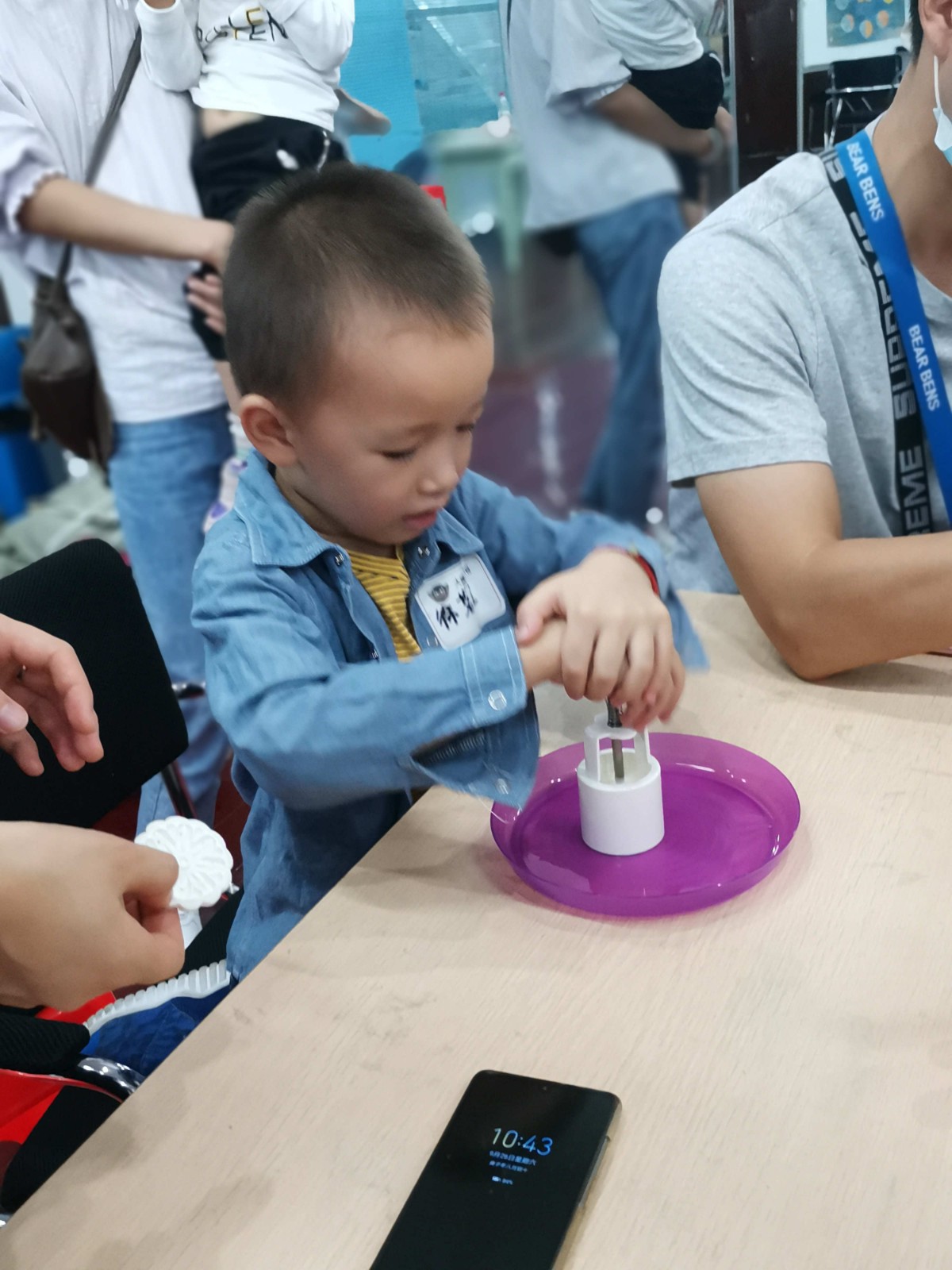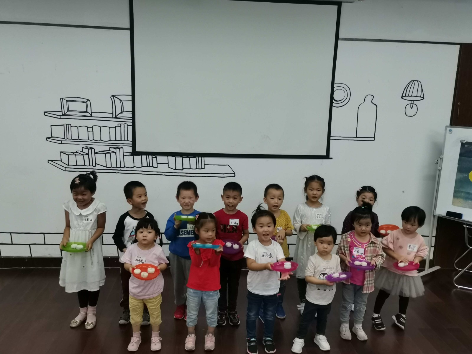绘本分享后老师让小朋友观察月象变化图,引导小朋友认知:从新月到满月的变化规律,如此循环,让小朋友了解月象变化的形成。分享时间带领小朋友一起学习制作豆沙馅冰皮月饼。虽然现在月饼的种类越来越丰富,但这是千百年来的一份思念和亲情,让小朋友在收获与分享中感受传统的中秋文化。