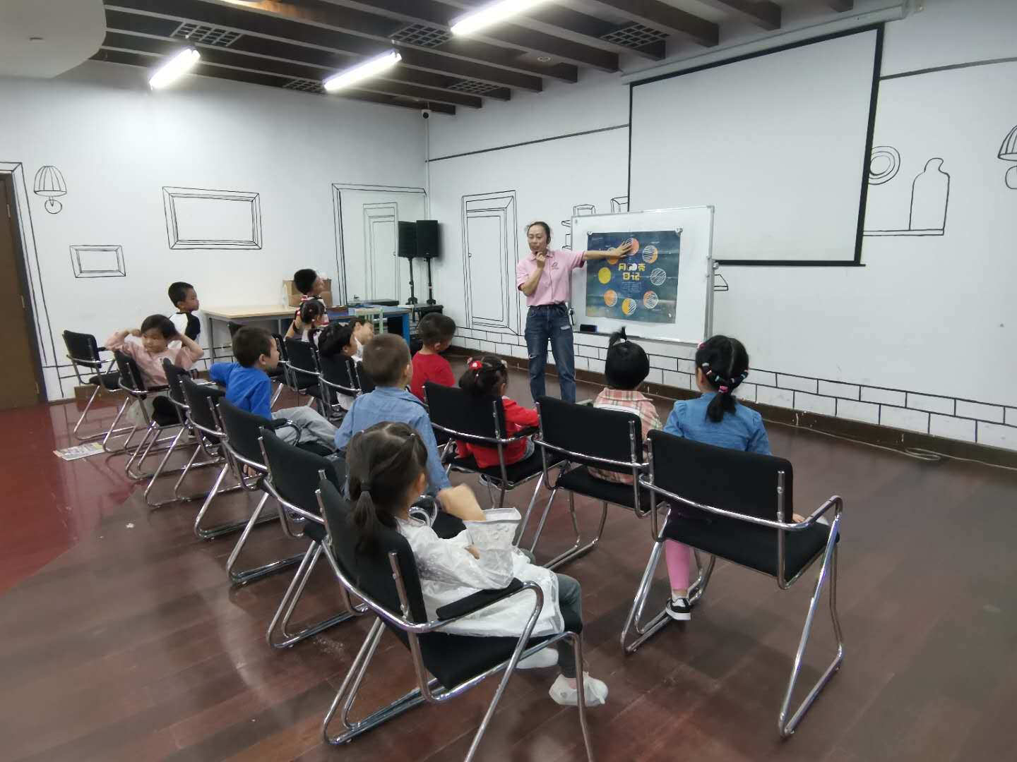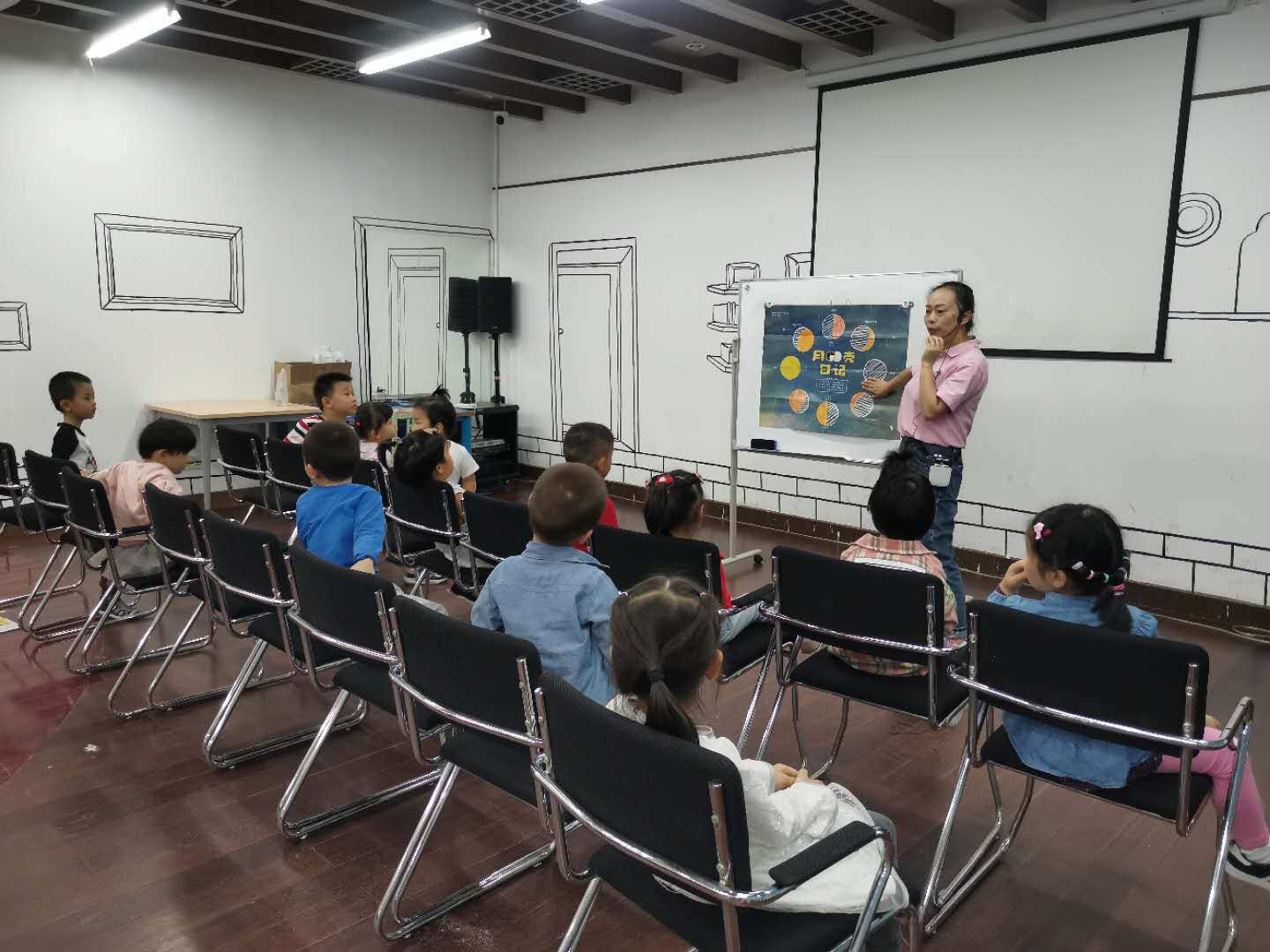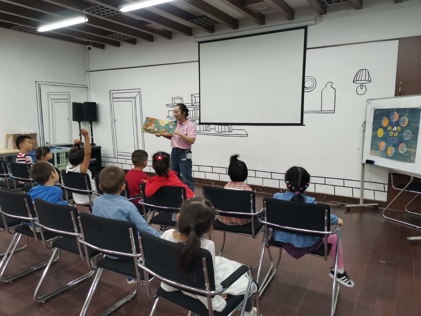 活动开始后,老师带领小朋友们在充满欢快,动感的音乐中进行热身后再开始绘本分享。