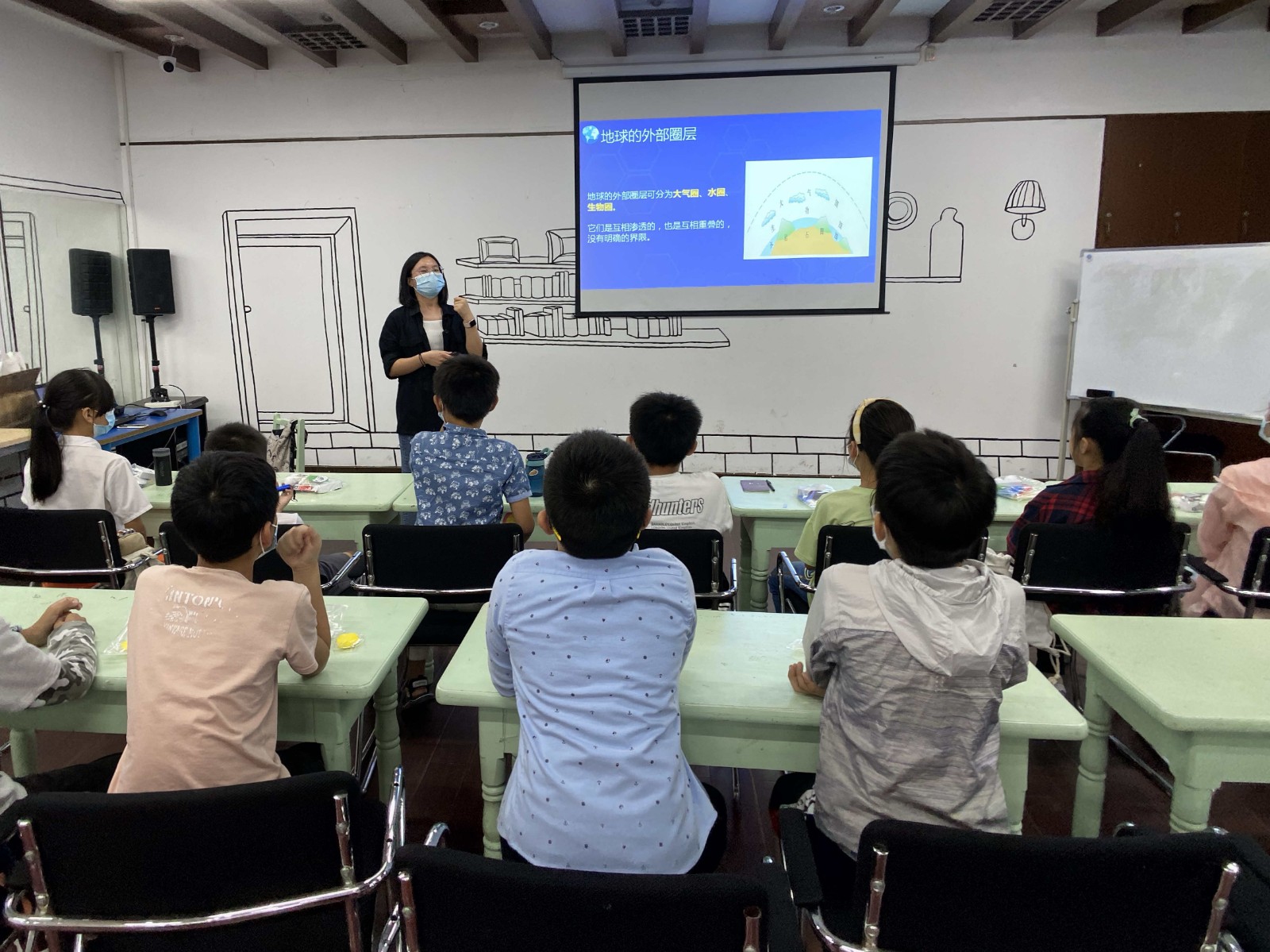 随后老师又通过列举生活中的小例子,将三个地球外部圈层一一作了介绍。小读者们知道了与我们生活息息相关的大气圈,不仅有制造风雨雷电的对流层,还有能让飞机平稳飞行的平流层,更有让美丽极光出现的电离层等等。对于蓝色的水圈小读者们都表示非常熟悉,地球表面有七分之一的地方都是海洋。另外,小读者们得知人类在生物圈中是消费者的身份,纷纷表示要善待其他动植物,保护环境,建设美丽的蓝色星球。