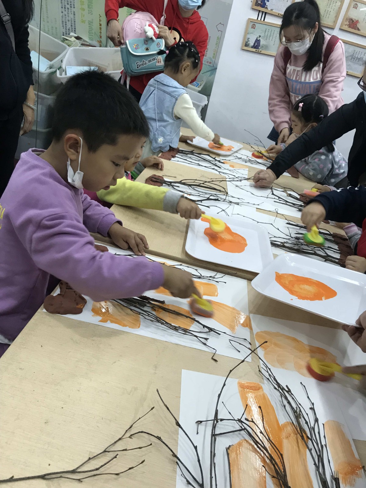 绘本分享后老师让小朋友认知小型灭火器和观察火山喷发的过程,引导小朋友了解消防安全的标志含义和作用,增强幼儿的安全防护意识。让小朋友自己动手用枯枝制作做一幅火灾中的森林的场景,培养孩子的动手能力、给家长展示自己的作品并阐述,让小朋友在收获与分享中感受到消防安全的重要性。