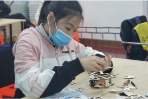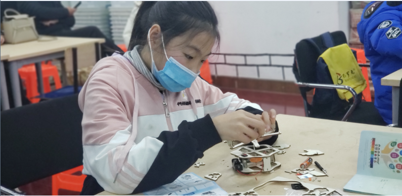 学到物理学知识在游乐园中的应用之后,怎么能少得了亲自动手实验的环节。小读者们需要动手制作旋转木马模型,进一步加深对知识的理解。拿到材料包之后,小读者们一股脑把配件倒了出来,紧跟着老师的步骤讲解开始拼装,有的手忙脚乱,老师不时进行指导;有的淡定自若,老师不忘夸奖表扬。随着时间的流逝,模型被搭建完成,安上电池,按下开关,旋转木马开始运行,小读者们高兴地互相分享成功的喜悦,最后的趣味问答也没能难倒小读者们。