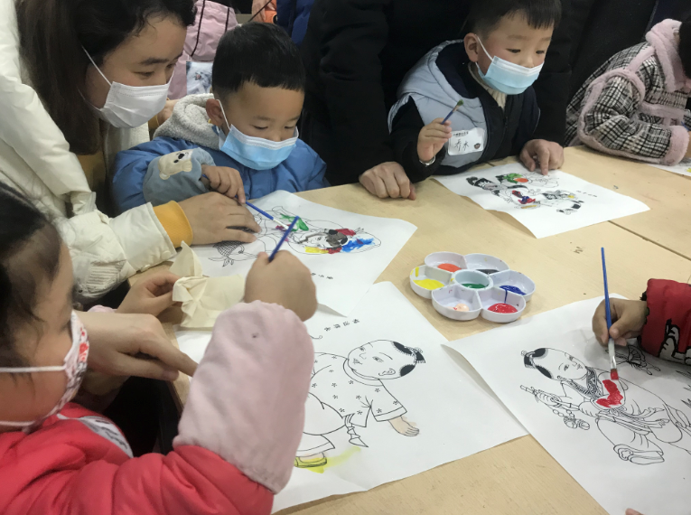 绘本分享后让小朋友来探索噗噗噔发出的声音,了解噗噗噔是在老北京春节庙会上常有的一种琉璃制的响器玩具,感受老北京的年味,不止有声音,还有色彩、味道和人情。带小朋友绘制一幅过年的年画。培养孩子的动手能力、给家长展示自己的作品并阐述,让小朋友在收获与分享中感受新年的热闹和喜悦。