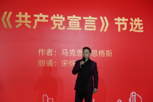 本次诗会分为饮水思源、恪守初心、再启征程三个篇章,著名朗诵表演艺术家宋怀强先生的《共产党宣言》(节选)拉开了朗诵会的帷幕。