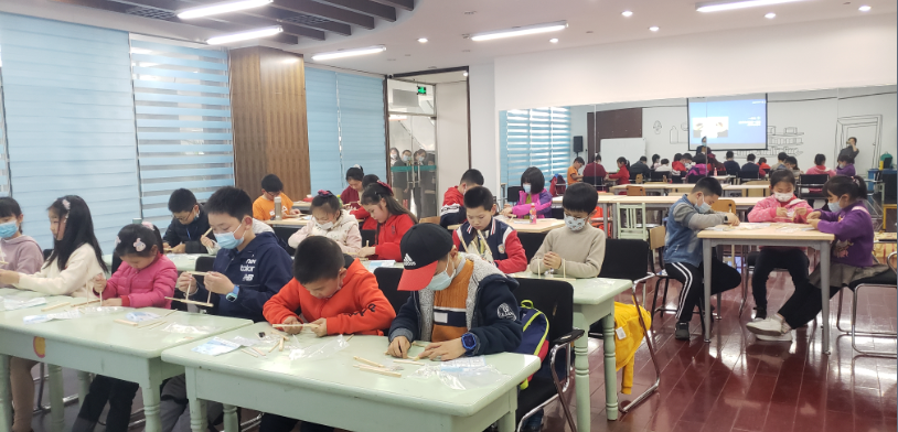 这个问题的答案需要小读者们亲自去发掘,活动的第三部分便是由小读者们亲自搭建牛顿摆模型。领到材料包,小读者们便迫不及待地动起手来,安插木条、拧紧羊角钉、用棉线串珠、保持珠子平衡,操作过程对小读者们的手脑协调能力有着不小的考验,在互帮互助、教学相长的融洽环境下模型被渐渐完成,活动现场时不时响起牛顿摆特有的清脆而悦耳的碰撞声,并与小读者们的欢声笑语交杂在一起。