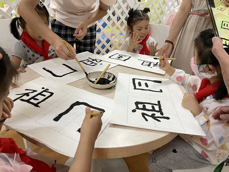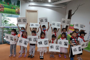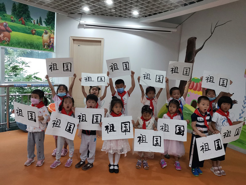 绘本分享后先让小朋友们学习系红领巾。佩戴红领巾是中国少年先锋队的标志。接着让小朋友们练习在红色田字格里画上祖国二字,来表达自己对祖国母亲的爱。这场活动让小朋友们在收获与分享中感受传统的爱国主义情怀。