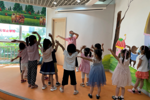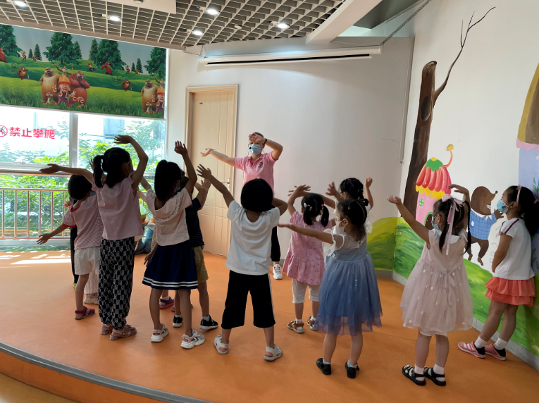 活动开始后,老师带领小朋友们在充满欢快,动感的音乐中进行热身后再开始绘本分享。