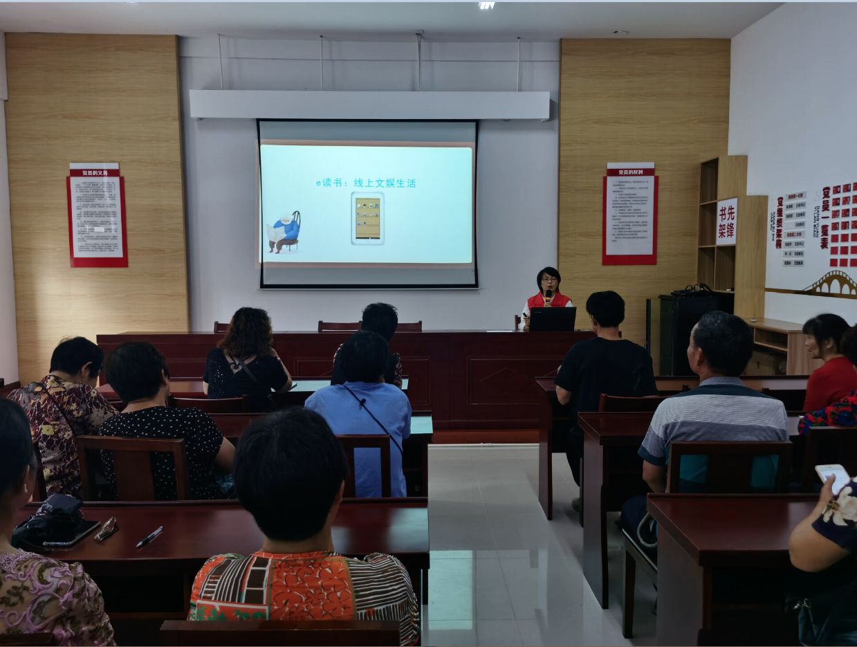 10月14日下午,“E养天年”老年人智能手机高级课程培训如约而至,20位中老年人参加。此次高级课程的第一课内容是:线上文娱生活,目标让老年朋友学会获取电子期刊、电子书等数字资源;熟悉使用手机看电视、听音乐等。