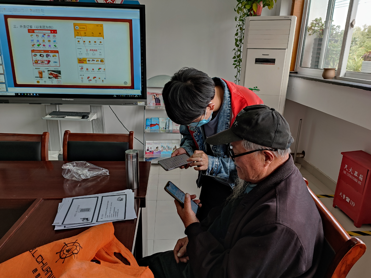 本次课程主要是教授老年人掌握线上铁路购票流程、网约车打车流程、支付宝出行流程,方便其日常生活。活动中志愿者通过“中国铁路12306”APP讲解如何在线购买铁路票,通过“高德地图”APP网约车功能讲解如何用手机打车,以“美团”APP为例教老年人如何点外卖。志愿者通过PPT讲解和手把手演示相结合的方式,让这些“大龄学员”快速的掌握了本次培训内容。常来参与培训的白阿姨说:“这下家里没天然气也不怕饿肚子了,想吃什么点什么,真是太方便了!”