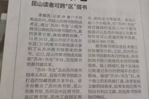 【昆山日报】市图书馆成功链接“苏州•书仓”