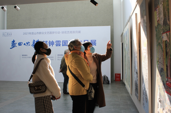 11月26日,2021年度最后一场琼花艺苑双月展“画田心耕”郝钟雲国画作品展在昆山市图书馆二楼琼花艺苑展厅展出。