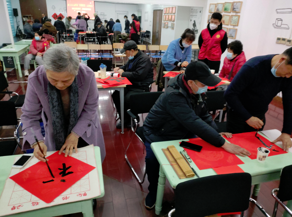 为保障老年人基本文化权益,弘扬中华民族敬老、爱老的传统美德,2022年1月18日,昆山市图书馆在一楼读书乐基地举办“墨香四溢迎新春,壬寅送福送春联——写春联,品书香”活动,在喜迎新春的气氛中感受中华书法文化的传统魅力。