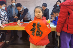 笔酣墨饱,挥毫泼墨,来自我市的书法家王清、王金春、吕钢德、钱杰义务为市民写春联、送“福”字。四位书法家现场创作的春联集时代性和艺术性为一体,楷、草、行、篆等多种书体各显神韵,一幅幅描绘节日祝福、幸福生活、读书学习与时代精神的春联跃然纸上,营造出浓郁的“年味”。