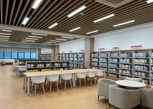 图书馆内设有少儿借阅区、成人借阅区、报刊阅览区,阅览座位100余个;配备2台自助借还机,10台电脑用于电子阅览功能,成人阅览室配备软沙发,增加阅读舒适感,阅读座位增加照明、多功能插座等功能,馆内还设有千兆免费wifi。