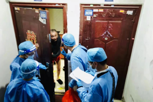 管控区的食品保障是居民最为关注的问题,在没有电梯的条件下“打通物资配送的最后一米”无疑是一项艰巨的挑战。物资到位后大家争分夺秒地投入战斗,用逐栋爬楼、背扛手提的方式紧张战斗3个小时,当晚便在志愿者的帮助下将四号点位负责的12栋1600余份物资点对点发放到居民手中。深夜里汗流浃背的身影没有片刻停留,因为大家心中只有一个念头——“一定要用最快的速度把物资送到居民手中,绝不能辜负群众的期待”。